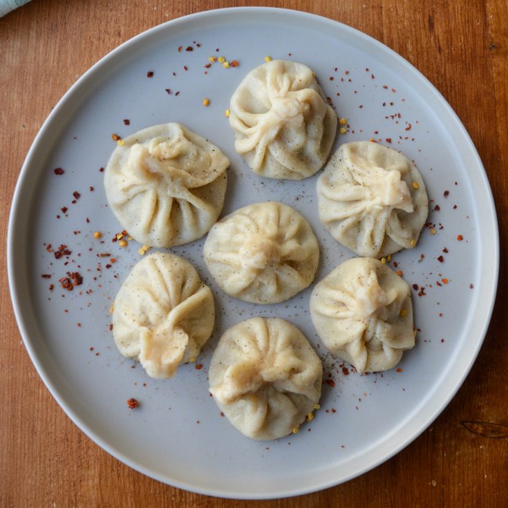 Khinkali are Georgian soup dumplings – twisted pouches filled with spiced meat (or mushrooms, cheese, or potato for vegetarians) and broth. The technique: hold by the knot, bite a small hole, suck out the broth, then eat the rest. Leave the knots on your plate – your leftover pile shows everyone how many you’ve conquered.